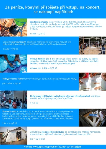 Vzdělání dětí - detailnější informace o tématu, které můžete využít při povídání na koncertě, aby se diváci dozvěděli, pro koho zpíváme a proč.